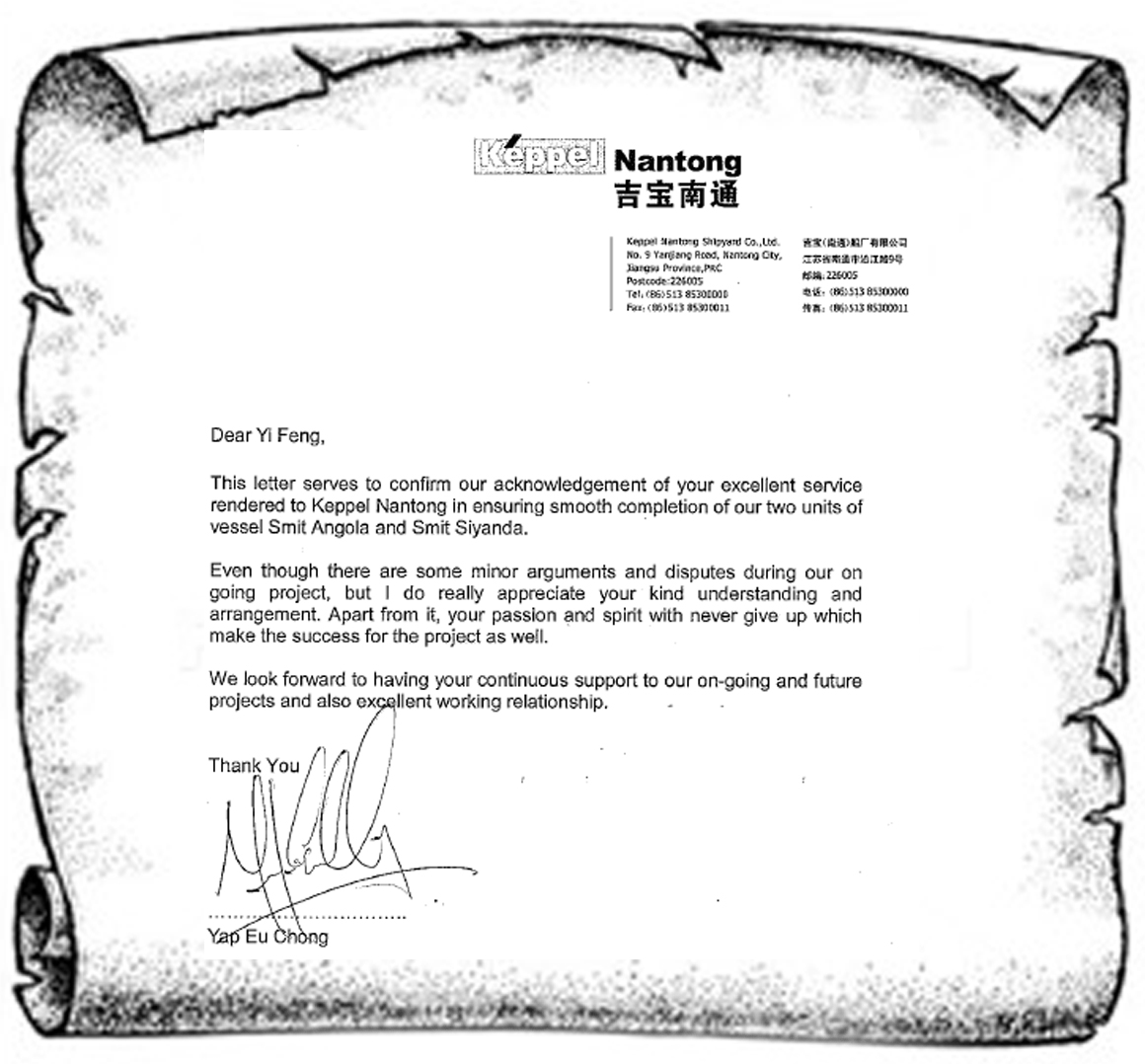 吉宝南通船厂在该项目的执行期间,我们遇到了许多组件上的故障、服务工程师的短缺、以及服务呼叫反应滞后等问题。裔锋,作为一名具有工作激情和“永不放弃”信念的项目主,成功克服了诸多困难和阻碍。尽管在执行过程中有一些小纠纷和争执,但项目最终还是在客户的满意声中及时如期地完成了。其中,26 SmitAngola号于2010年7月交付,27 SmitSiyanda号于2010年9月交付。